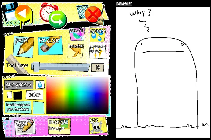 그런 이유로 예전에는 도구가 실험적이고, 자유롭고, 이상하고, 거칠고... 더 흥미로웠다고 생각합니다. 우리가 종종 영감을 얻기 위해 찾는 도구의 복고풍 황금기에는 (브라이스, 키드 픽스, 파인 아티스트, 심지어 마리오 페인트가 있는 닌텐도까지...) 기계로 창의력을 발휘하는 것이 얼마나 이상한 일인지 보여주는 도구가 흔했습니다. 컴퓨터는 무한한 가능성의 공간입니다. 창의력만 있다면 컴퓨터에서는 어떤 일이든 일어날 수 있습니다. 그것이 어떻게 컴퓨터에서 창작으로 이어지는지 봅시다!